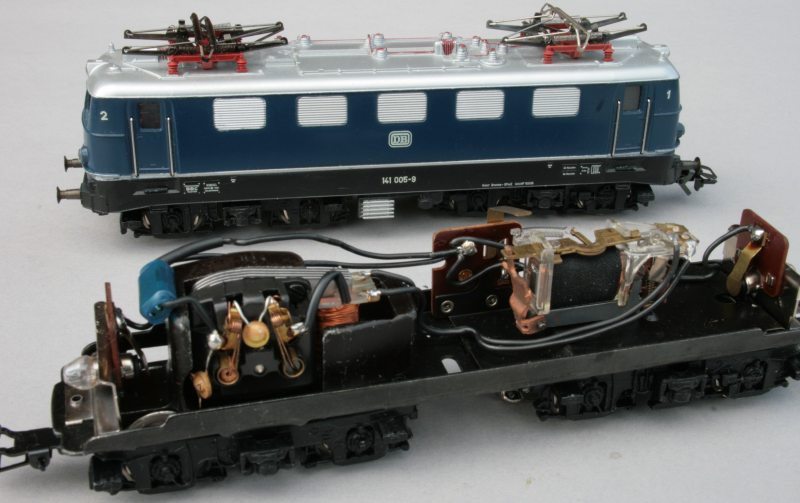 | (7) | Decoder 60901-4, also 60902 passt gedreht ohne Fräsarbeiten. Für andere Decoder ist dies unbedeutend. Bei jüngeren Exemplaren dieser Baureihe wurde die Produktion auf Trommelkollektormotor umgestellt. |