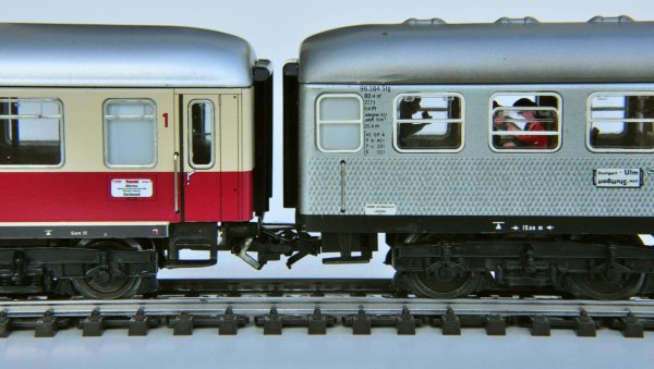 Der Kuppelabstand mag für manchen akzeptabel sein. Allerdings lässt sich ohne Umbau keine stromführende Kupplung einbauen. Wenn jeder Wagen im Zug einen Schleifer bekommen soll, erhöht sich der Rollwiderstand sehr schnell ins unermessliche. Das kann Probleme geben. Ein Umbau würde sich lohnen. |